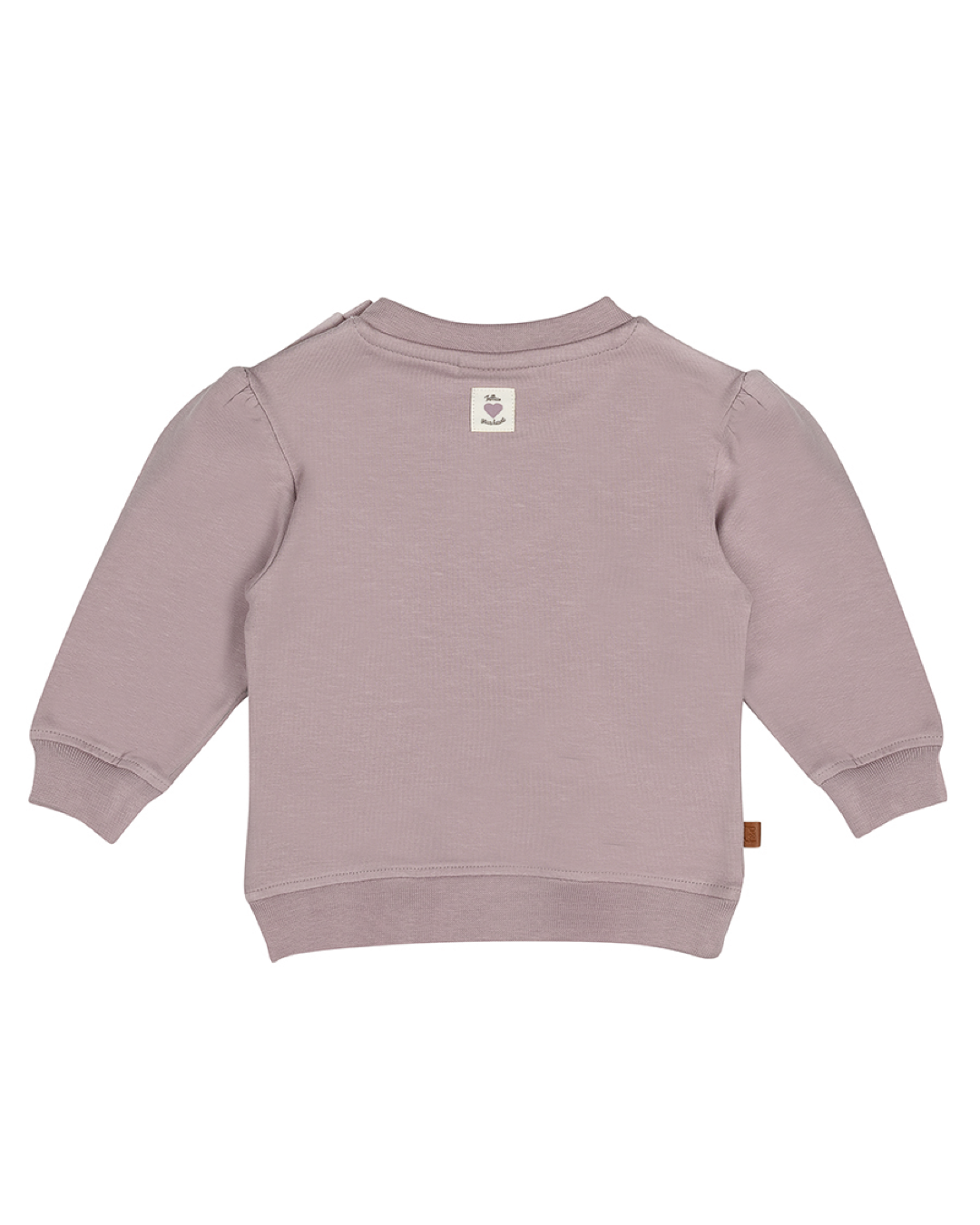 Deze baby sweater is die comfy topper die je telkens pakt: French Terry van ±260 GSM voelt rijk en zacht, houdt je kleintje lekker warm zonder te dik te worden en blijft na het wassen mooi in vorm. De katoen-stretchmix (95% katoen, 5% elastaan) beweegt soepel mee, terwijl het schouderdrukknoopje aankleden supermakkelijk maakt. De subtiele hart-borduring geeft een lieve touch die niet slijt zoals een plakprint. De mauve kleur mixt moeiteloos met ecru, zand en denim.
